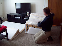 So..in the end...with the "help" of the cats and Cheryl. We were able to put it together in our living room and recline on it in less than an hour. Pretty cool eh?