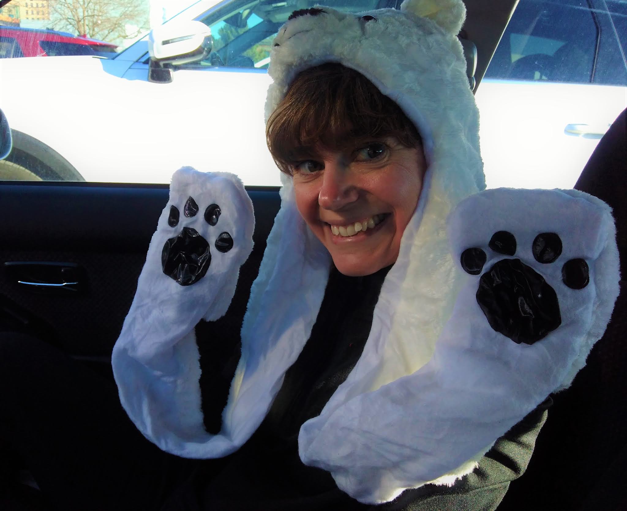 As for me, she bought me antlers. They were too small, too floppy, and blew off the moment I stepped out of the car. needless to say, I did not wear them for very long.
