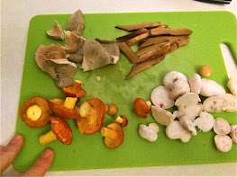 Dave agreed with out little taste test. We did not grill up too much of anything in the event one or more of them turned out to be upsetting. But we even tossed in some Shrimp of the woods for good measure. I'm warming up to the Aborted Entaloma after having sampled it several times now. And there is simply SO MUCH of it on the forest these days. I continue to say I won't gather any more, only to find a cute and pretty specimen just begging me to pick it up and put it in the basket. And as I gain a little more understanding on the cooking process for them, I think I'm beginning to like them more and more.